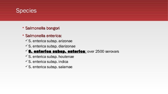 Salmonella Enterica And Salmonella Bongori: Salmonella consists of only two species, namely salmonella enterica and salmonella bongori.